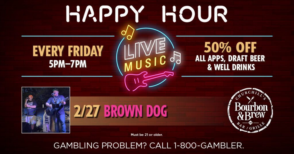 February 27th: Brown Dog50% OFF ALL Apps, Well Drinks and Draft Beer!
