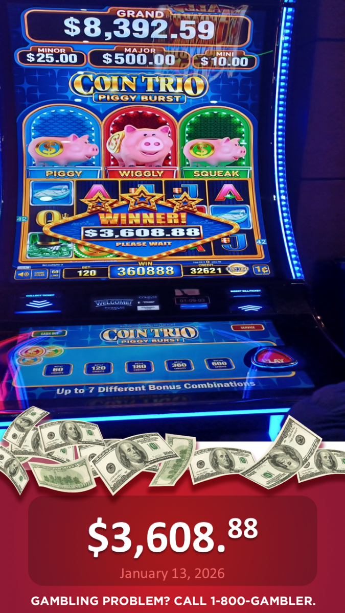 Congratulations to all our winners! Every day more and more players join the (very) long list of Presque Isle Downs & Casino jackpot winners. Looking to keep up with all the winning? Good luck—we’re always adding new jackpot photos to this page!