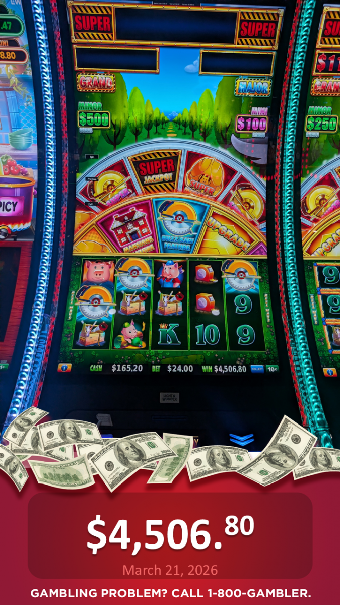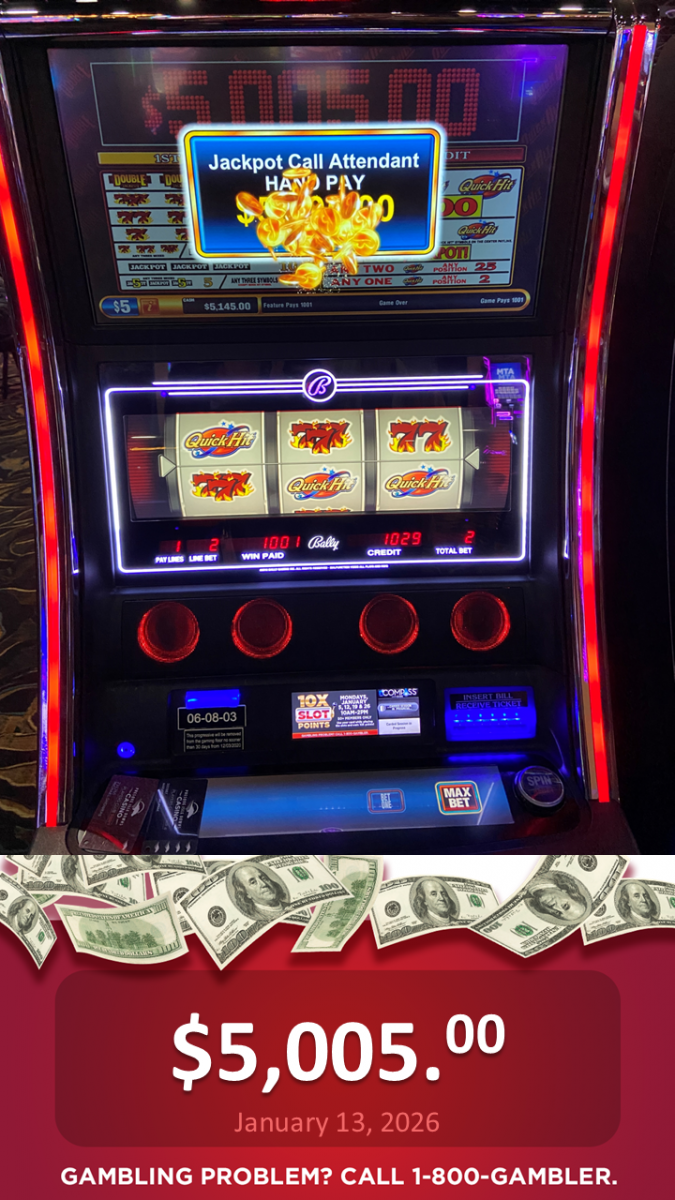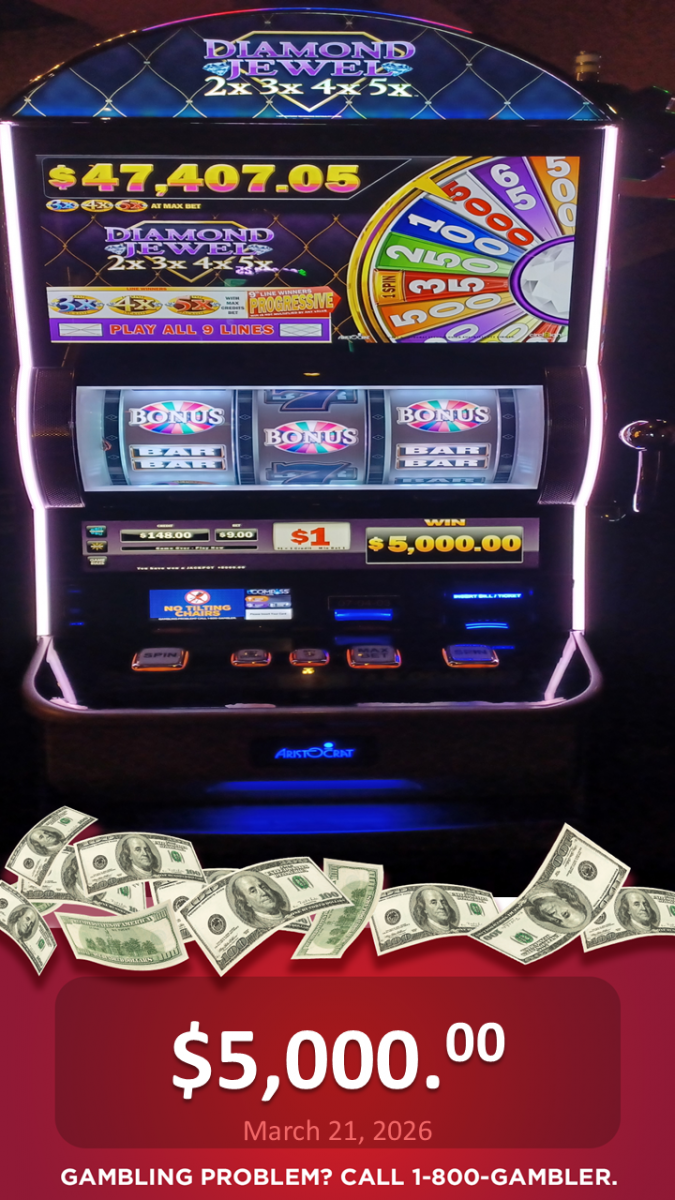 There’s nothing like the thrill of hitting it big on the slots. So, if you’re ready to win, our Erie Casino is your place for jackpots, jackpots and more jackpots! Our spacious 59,000-square-foot casino floor is home to over 1,500 sizzling slots. Take a spin and win on all your favorite themes you know and love, along with the latest and greatest new games. For an up-to-date list of all the slot machines you can play today at Presque Isle Downs and Casino, visit our Slots page.