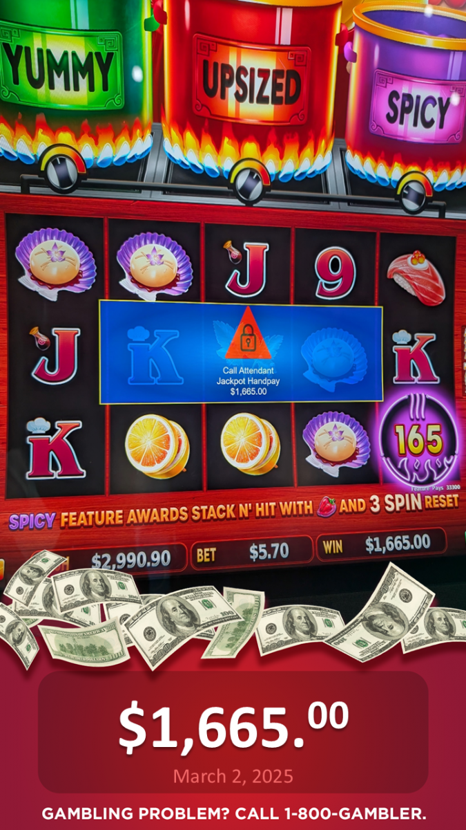 There’s nothing like the thrill of hitting it big on the slots. So, if you’re ready to win, our Erie Casino is your place for jackpots, jackpots and more jackpots! Our spacious 59,000-square-foot casino floor is home to over 1,500 sizzling slots. Take a spin and win on all your favorite themes you know and love, along with the latest and greatest new games. For an up-to-date list of all the slot machines you can play today at Presque Isle Downs and Casino, visit our Slots page.